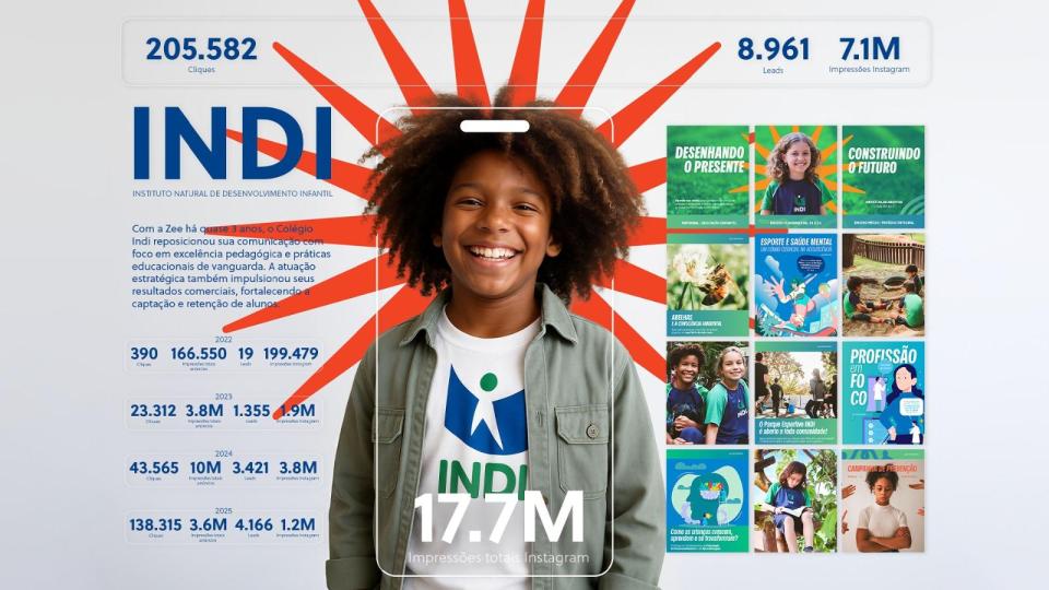 Há 4 anos, a ZEE atua como parceira estratégica do Colégio Indi na construção e fortalecimento de sua presença no ambiente digital. Nosso trabalho vai muito além da comunicação básica: entregamos uma estrutura completa de posicionamento, conteúdo e performance, acompanhando de perto cada etapa do crescimento da instituição.