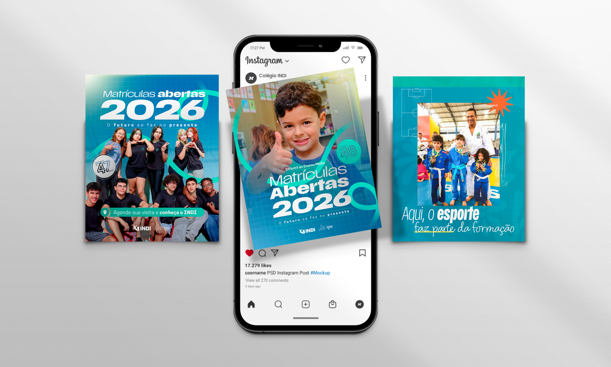 Além do branding, assumimos a produção contínua de conteúdo para redes sociais, criando materiais que conectam o Indi ao seu público com autenticidade, clareza e propósito. Também realizamos a produção e edição de vídeos institucionais e campanhas, ampliando o impacto da comunicação e fortalecendo a autoridade da escola no meio digital.